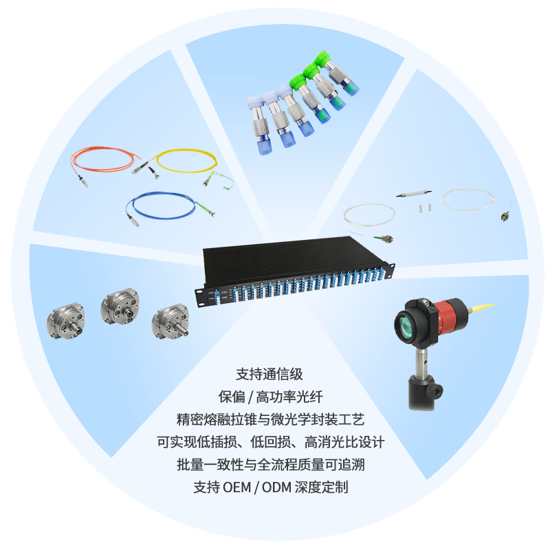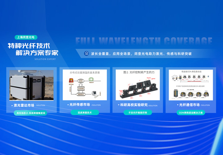 我们综合服务的光纤器件应用领域有:光纤通信、光纤激光/放大、光学/光谱分析测量、生物医疗OCT、雷达探测、航空航天、光纤传感/光纤陀螺、相干合成、机器视觉、量子通信、超快激光和科学研究等等。