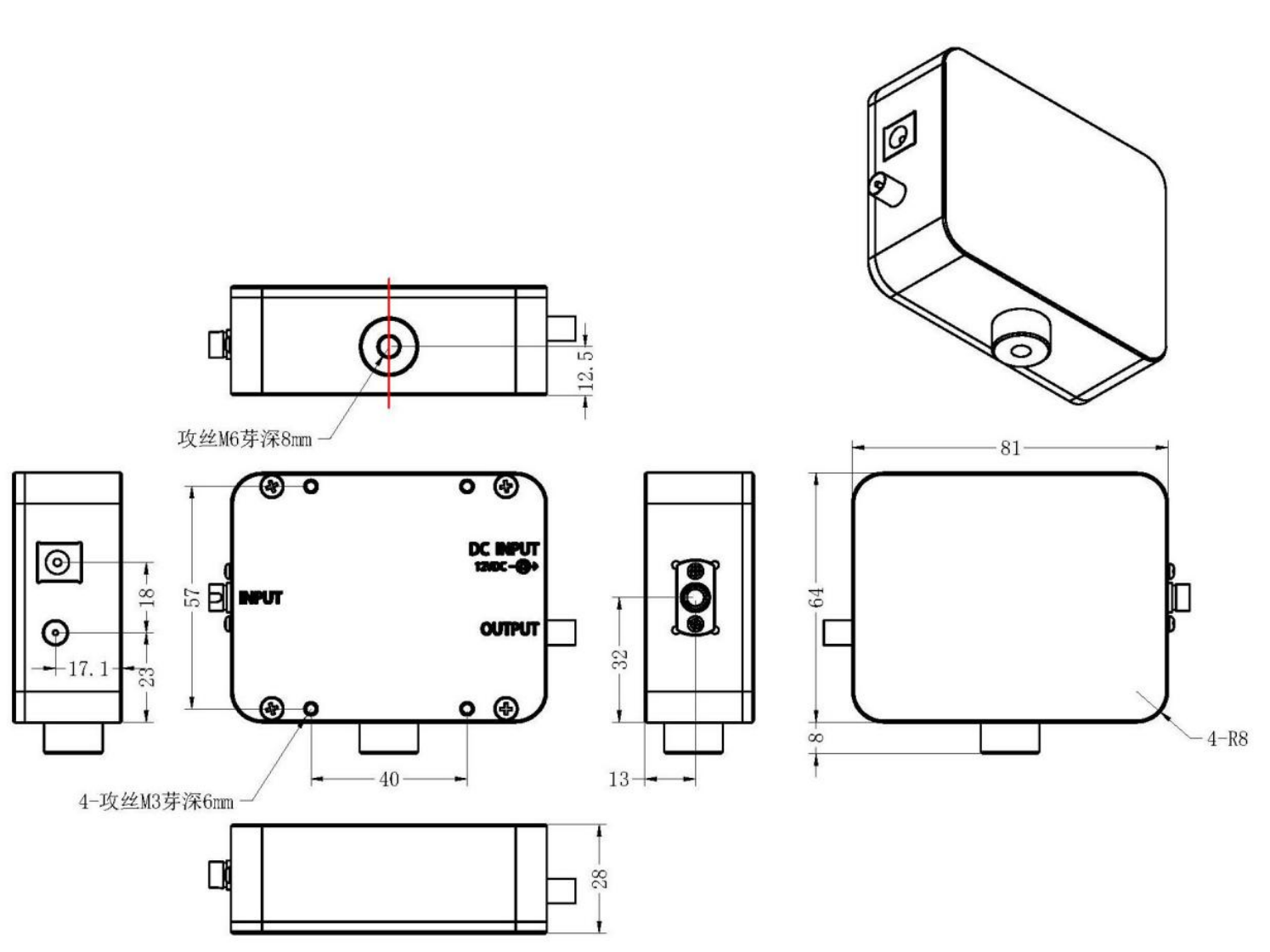 PD12是一种带放大电路的光电探测器,可与光学系统中的 FC 连接光缆一起使用。该装置包括光电二极管、跨阻放大器、射频连接器等,封装在⼀个铝制外壳中。FC 法兰便于与光纤光源耦合,输出端使用SMA连接器,以减小尺寸并最大限度的提高频率响应,最大带宽为 1GHz。探测器有两种光谱范围可选,分别是400~1000nm和1000~1700nm。