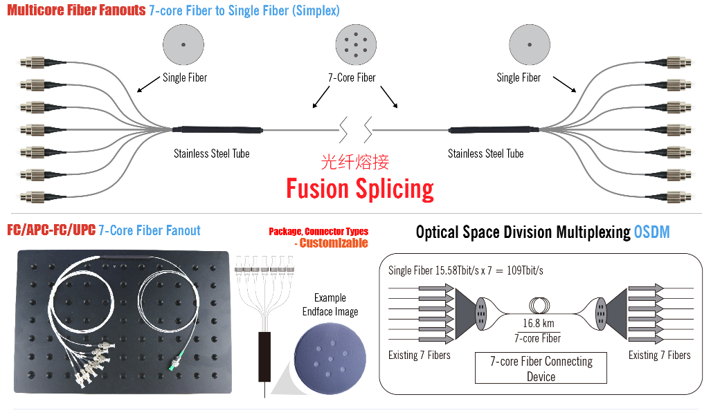 1. 多芯光纤芯数:2,3,4,7,8 & 19芯