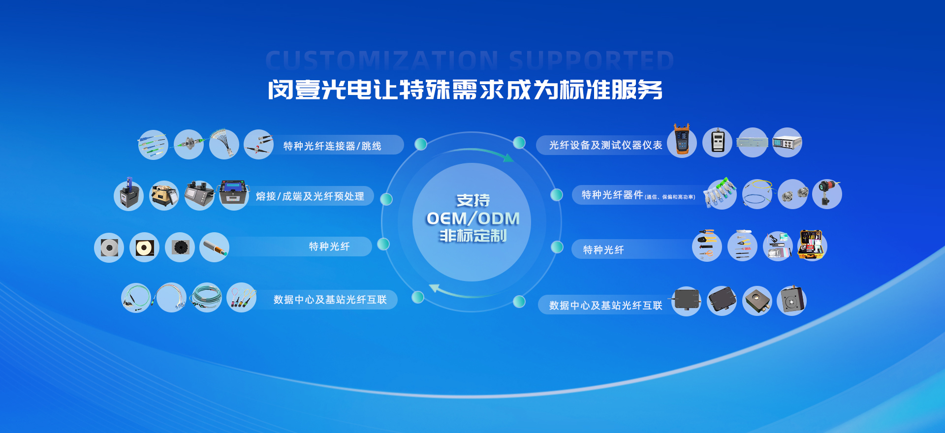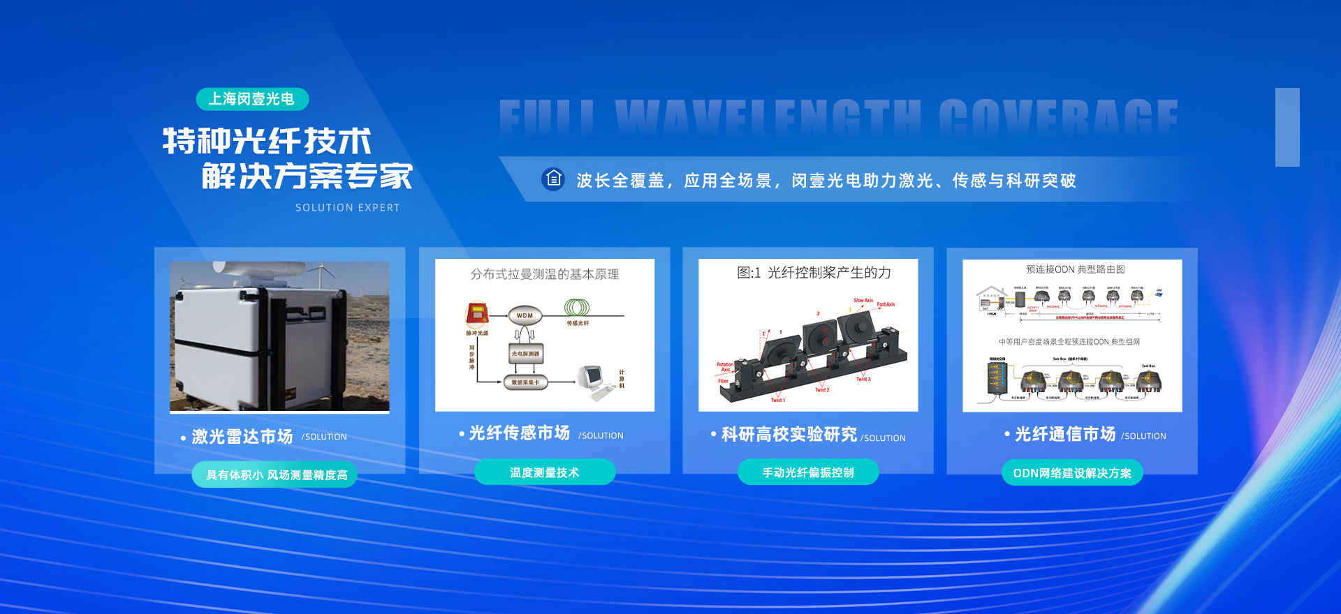 我们综合服务的光纤器件应用领域有:光纤通信、光纤激光/放大、光学/光谱分析测量、生物医疗OCT、雷达探测、航空航天、光纤传感/光纤陀螺、相干合成、机器视觉、量子通信、超快激光和科学研究等等。