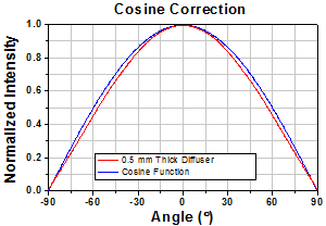 余弦校正器中的散射片使得可在与散射表面最多呈180°角的方向上收集光。这使得在装置中固有的采样表面几何所导致的问题降到最少。因而,这些散射片非常适用于光谱测量,或用作辐照探针。